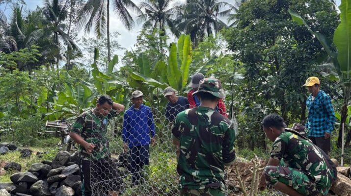 Anggota Satuan Tugas (Satgas) TNI Manunggal Membangun Desa (TMMD) ke-126 Kodim 0818/Malang-Batu, khususnya dari Yonzipur 5/Abw, saat mereka bersama-sama masyarakat Dusun Kerajan 1A, Desa