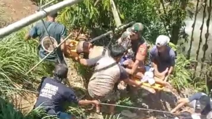 Babinsa Koramil 0825/20 Songgon Evakuasi Warga Jatuh Dari Tebing Sungai Binau Songgon – Anggota Bintara Pembina Desa (Babinsa) Koramil 0825/20 Songgon menunjukkan responsivitas dan