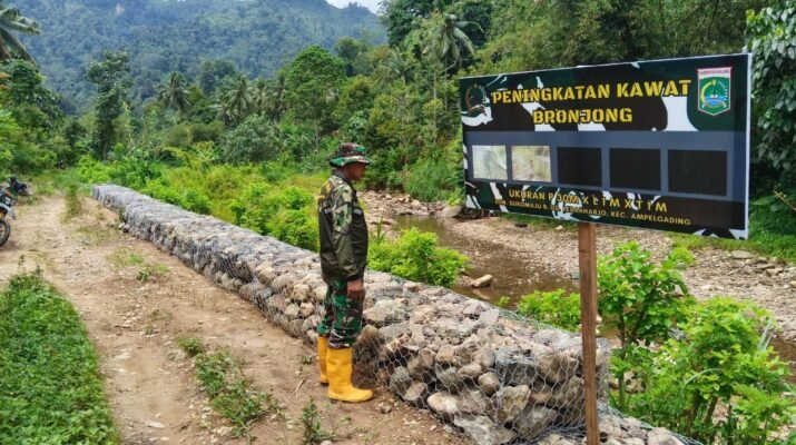 Satgas TMMD 126 Lebakharjo Kejar Pemasangan Kawat Bronjong di Tengah Tingginya Curah Hujan Di tengah tingginya intensitas hujan yang melanda wilayah Kecamatan Ampelgading, Kabupaten
