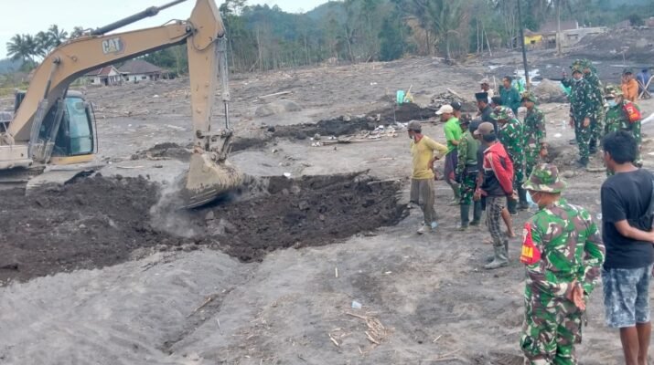Tim Gabungan TNI Evakuasi Puing Rumah Warga yang Tertimbun Material Vulkanik Semeru Lumajang — Upaya pemulihan pascaerupsi Gunung Semeru terus dilakukan secara intensif oleh