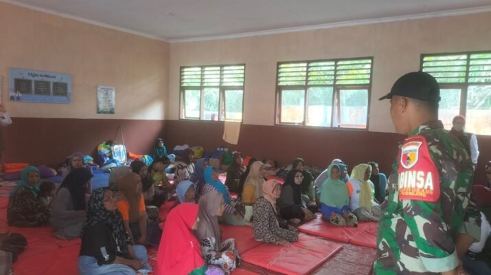 Babinsa Supiturang Dampingi Tenaga Medis Layani Pemeriksaan Kesehatan Lansia dan Anak-Anak di Pos Pengungsian Pronojiwo.