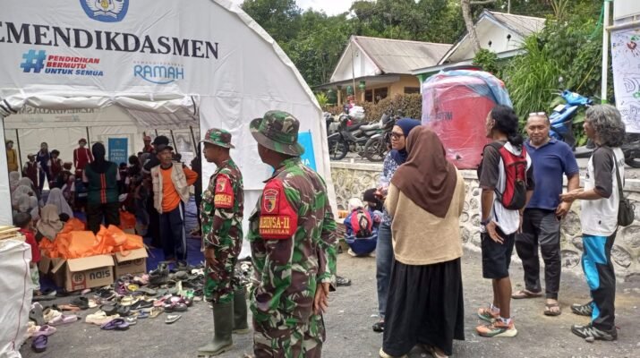 TNI Dampingi Guru Mengajar di Sekolah Darurat untuk Pastikan Hak Belajar Anak Tetap Terpenuhi Lumajang — Komitmen menjaga keberlanjutan pendidikan bagi anak-anak terdampak erupsi