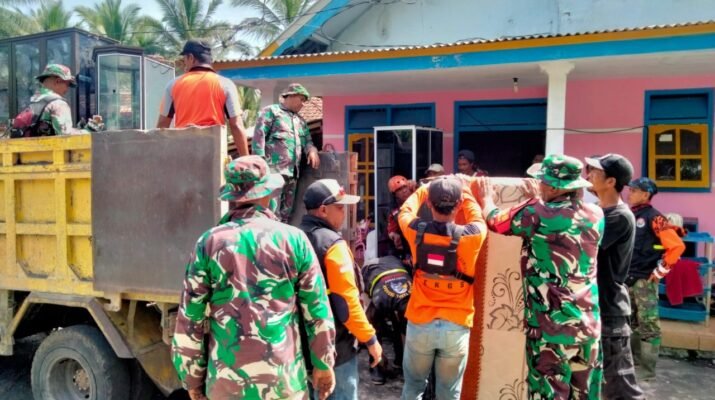“Kondisi rumah Bapak Satuman sudah sangat rawan. Fokus kami saat ini adalah mengamankan barang-barang berharga dan perabotan rumah tangga agar tidak rusak atau hanyut jika ada banjir susulan. Kami ingin memastikan, meskipun rumah rusak, warga masih memiliki aset yang bisa digunakan nantinya. Ini bentuk tanggung jawab kami melindungi harta benda rakyat,” tegas Peltu Baidowi di sela-sela kegiatan evakuasi.