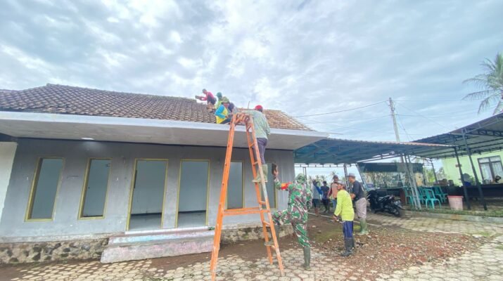 GLENMORE — Semangat gotong royong dan kemanunggalan TNI dengan rakyat kembali ditunjukkan di Desa Bumiharjo, Kecamatan Glenmore. Pada hari Senin, 10 November 2025, mulai pukul 08.00 WIB hingga selesai, Babinsa Desa Bumiharjo, Sertu Sugeng W, turun langsung ke lapangan untuk memonitoring dan mendampingi kegiatan kerja bakti pembongkaran atap kantor Badan Permusyawaratan Desa (BPD) Bumiharjo.