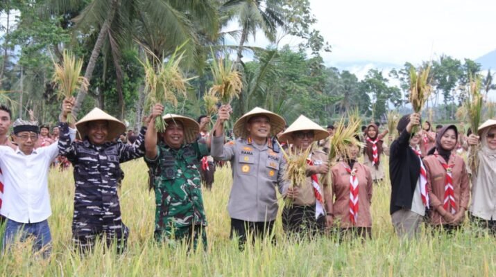 Kegiatan yang digelar pukul 14.30 WIB ini menjadi simbol nyata semangat gotong royong antara pemerintah, aparat TNI-Polri, dan petani dalam memperkuat ketahanan pangan daerah serta mendukung program Swasembada Pangan Nasional 2025.
